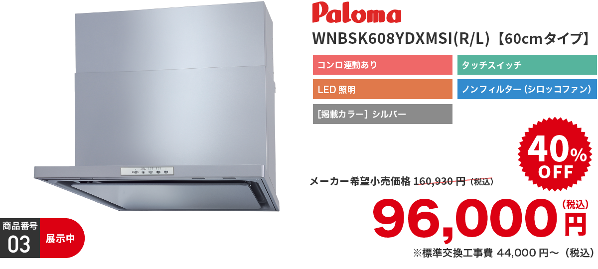 | 取付工事費 | ※部材及び設置工事費別途 ※[標準交換工事内容]機器交換、廃棄処分、ダクト接続 ※現場状況により必要部材が発生する場合がございます |