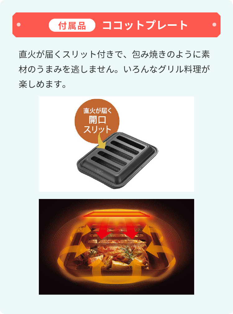 - 約290℃で自動温度調節。鍋をふる料理やあぶり料理、圧力鍋の料理に適しています。※高温モード状態でも一定温度になると消火する場合があります。