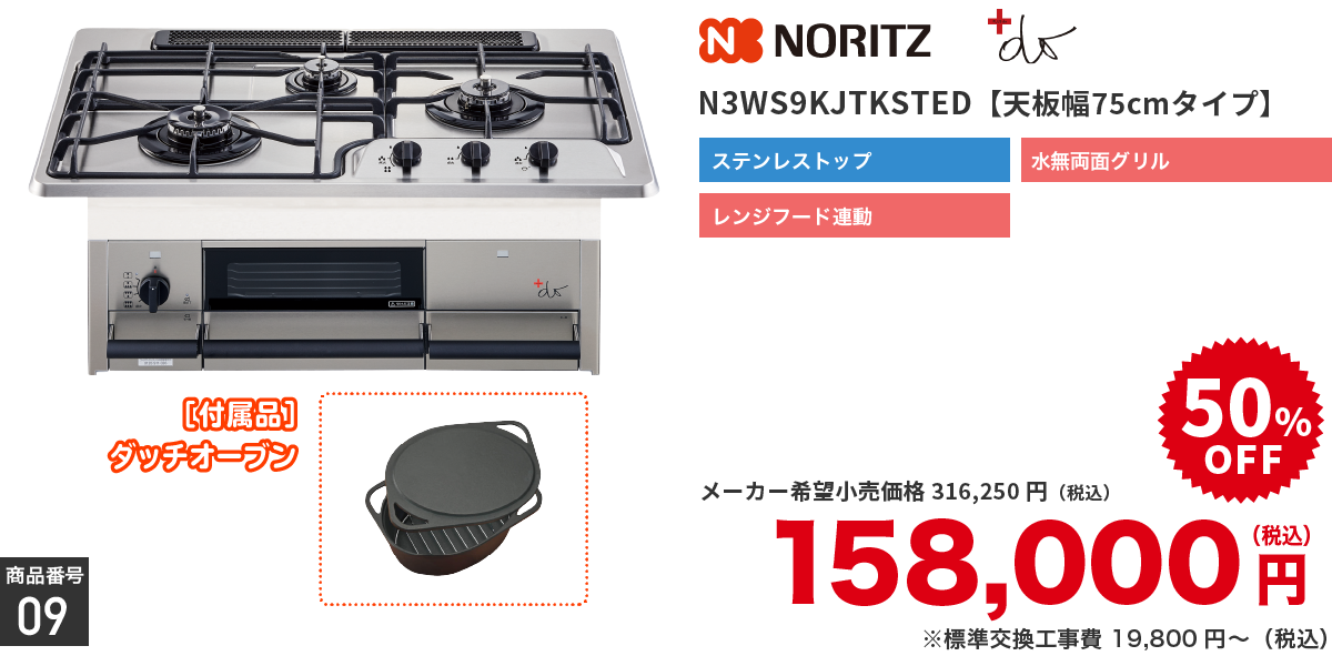 | 取付工事費 | ※部材及び設置工事費別途 ※[標準交換工事内容]機器交換、廃棄処分、配管接続 ※現場状況により必要部材が発生する場合がございます |