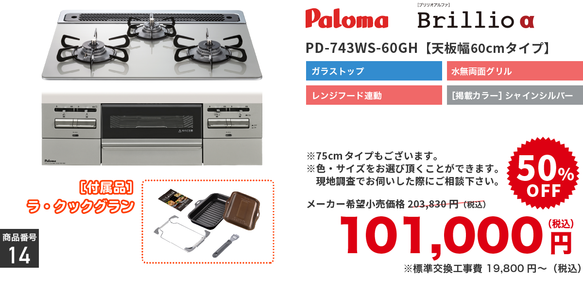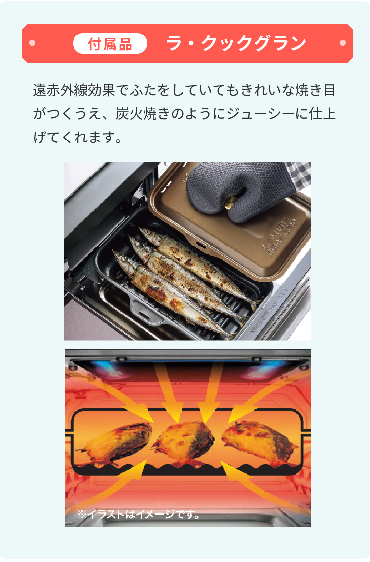 - ラ・クックがすっぽり入るゆとりのワイドグリルです。