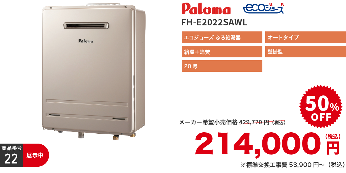 | 取付工事費 | ※リモコン等部材及び設置工事費別途 ※[標準交換工事内容]機器交換、廃棄処分、配管接続、ドレン工事 ※現場状況により必要部材が発生する場合がございます。 |