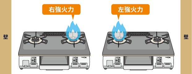 ※使い勝手上のおすすめとして記載しています。壁側が強火力バーナーであっても問題はありません。